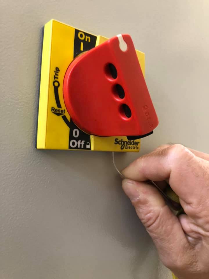 Eludere un sezionatore deve essere possibile solo e unicamente tramite l’uso di utensili speciali, non fil di ferro improvvisati. Questo che vedi in foto non è consigliato permetterlo.