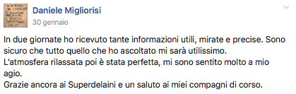 Mi sono trovato subito a mio agio, soprattutto perché hai dedicato del tempo per spiegarmi come ci si muove in questo campo.
