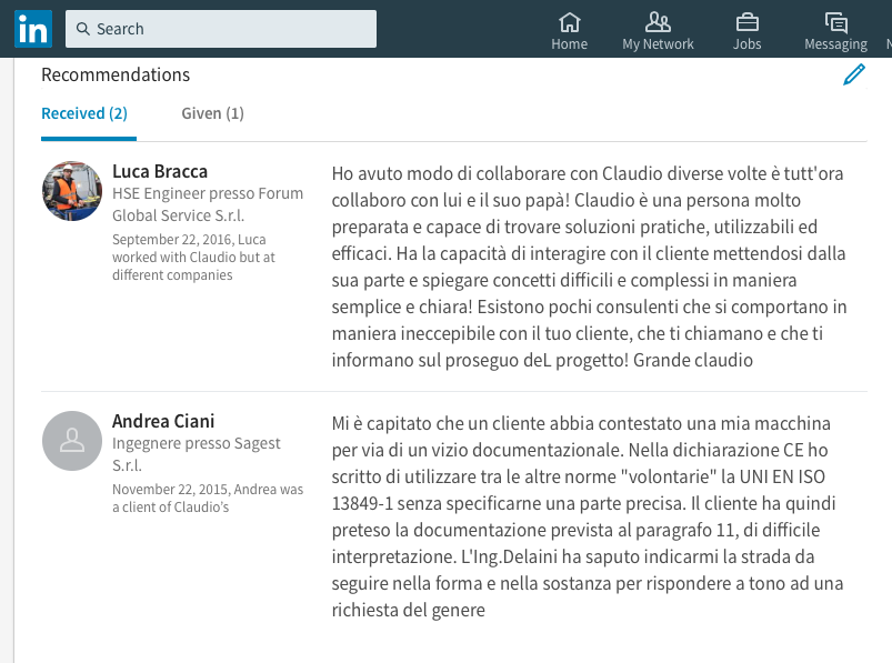 Claudio è una persona molto preparata e capace di trovare soluzioni pratiche, utilizzabili ed efficaci. Ha la capacità d’interagire con il cliente mettendosi dalla sua parte e spiegare concetti difficili e complessi in maniera semplice e chiara! Esistono pochi consulenti che si comportano in maniera ineccepibile con il tuo cliente, che ti chiamano e che ti informano sul proseguo deL progetto! Grande Claudio