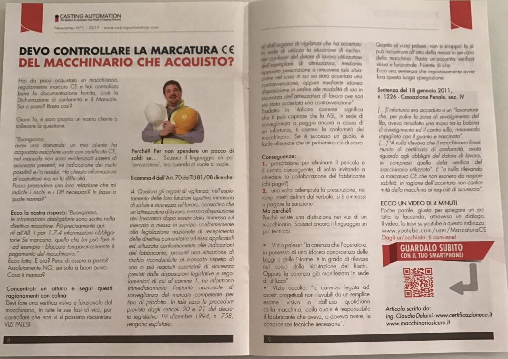Siamo stati contattati come esperti in sicurezza macchinari, nella trasmissione Report.